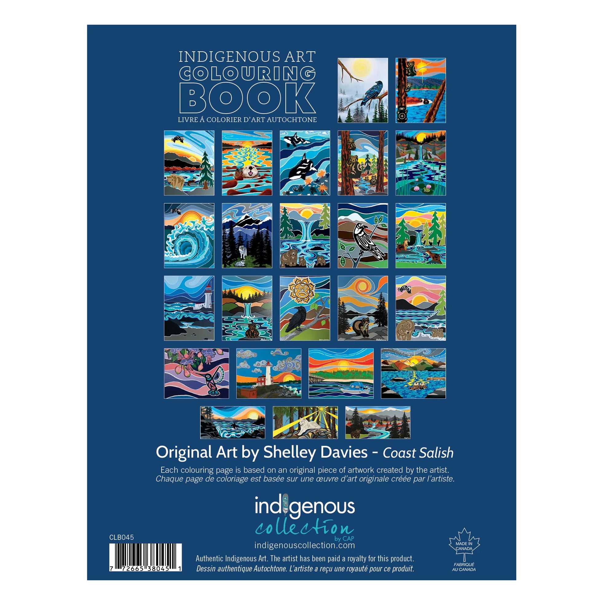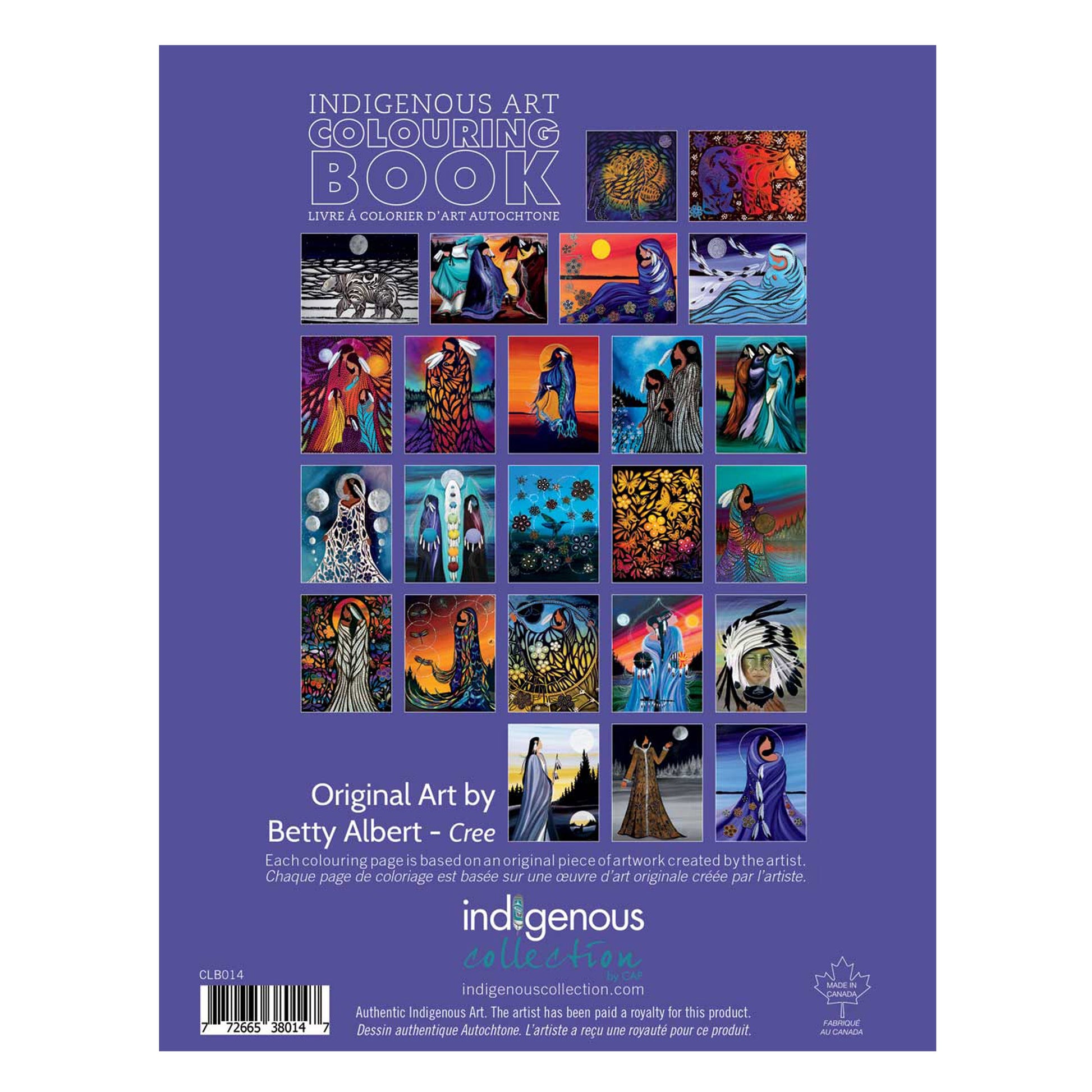 These 8.5" x 11" colouring books feature 28 pages of original Indigenous artwork. Each page showcases authentic designs alongside insights into the artist's cultural background, a personal biography, and photographs that bring their story to life. The back cover includes a full-colour reference of the original artwork, offering guidance and inspiration as you colour. These colouring books are made and printed in Canada.